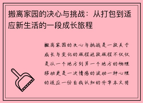 搬离家园的决心与挑战:从打包到适应新生活的一段成长旅程