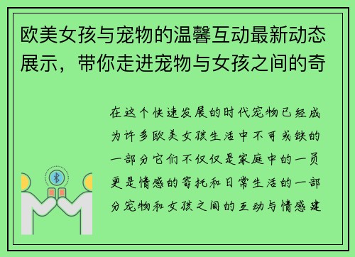欧美女孩与宠物的温馨互动最新动态展示,带你走进宠物与女孩之间的奇妙世界