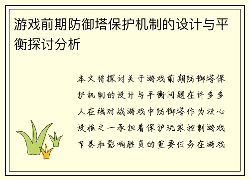 游戏前期防御塔保护机制的设计与平衡探讨分析